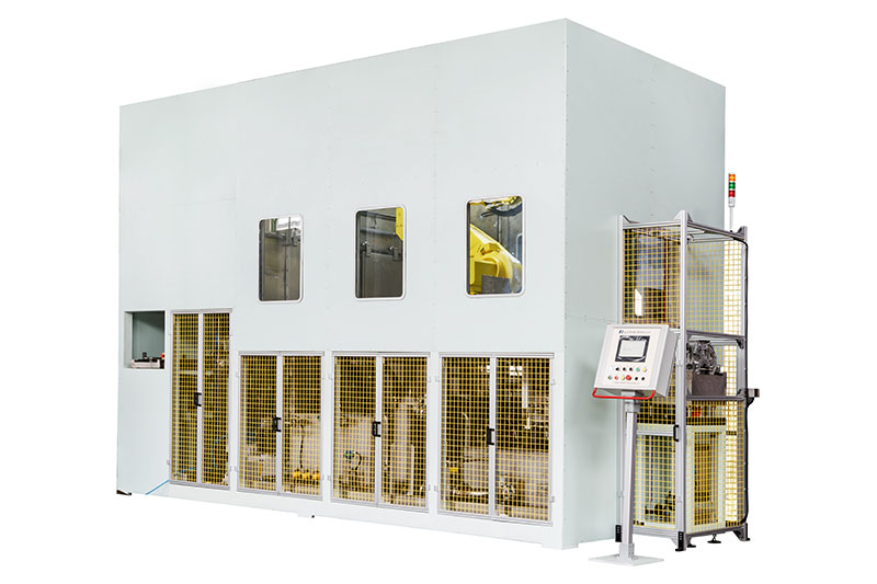 機器人高壓清洗機???產品特點???節拍快?去毛刺?全方位清洗可在120s內完成清洗及干燥。?針對重要部位定位高壓去毛刺清洗。?區別于傳統的傳動方式清洗無死角。??????柔性高?效率高??選用六軸機器人抓件清洗,可針對不同工件選擇程序,適用于多種工件。?集成浪涌清洗、高壓定位清洗、漂洗、吹干及真空干燥一體。???機器人清洗機與傳統清洗機相比擁有更高柔性,可對缸體等零件進行360度無死角清洗,并且清洗速度更快、效率更高。可以將清洗工位設.計的更緊湊,更適合汽車行業。主要技術參數?生產節拍90秒以上清洗壓力1.5~50MPa去毛刺式高壓水射流干燥方式壓縮空氣吹干、真空干燥冷卻方式風冷高壓流量40-100L/min過濾系統1~3級過濾過濾方式反沖洗式過濾,帶式過濾過濾精度5μ~100μ控制系統SIEMENS、MITSUBISHI機器人FANUC、ABB、KUKA??浪涌清洗&低壓噴淋?高壓定位清洗?防銹漂洗機器人抓取工件至浪涌池,對工件表面進行低壓噴淋清洗及浪涌清洗,能快速剝離工件內殘留較大金屬顆粒,清洗完成后打開電磁閥快速排出液體及循環過濾。?抓取工件后移動到固定式高壓噴嘴處針對重要孔位進行高壓(去毛刺)清洗,清洗壓力最高為50MPa。?清洗完成后抓取工件至漂洗槽進行晃動漂洗并對需要防銹處理的工件進行防銹。??????真空干燥&冷卻?壓縮空氣吹掃&風刀吹掃??清洗完成后抓取工件至漂洗槽進行晃動漂洗并對需要防銹處理的工件進行防銹。?吹掃完成后通過輥筒自動浸入真空干燥室,用負壓使工件在較低溫度下快速干燥,干燥完成后利用風扇對工件吹掃快速冷卻至室溫,從而可以進行氣密檢測及包裝。